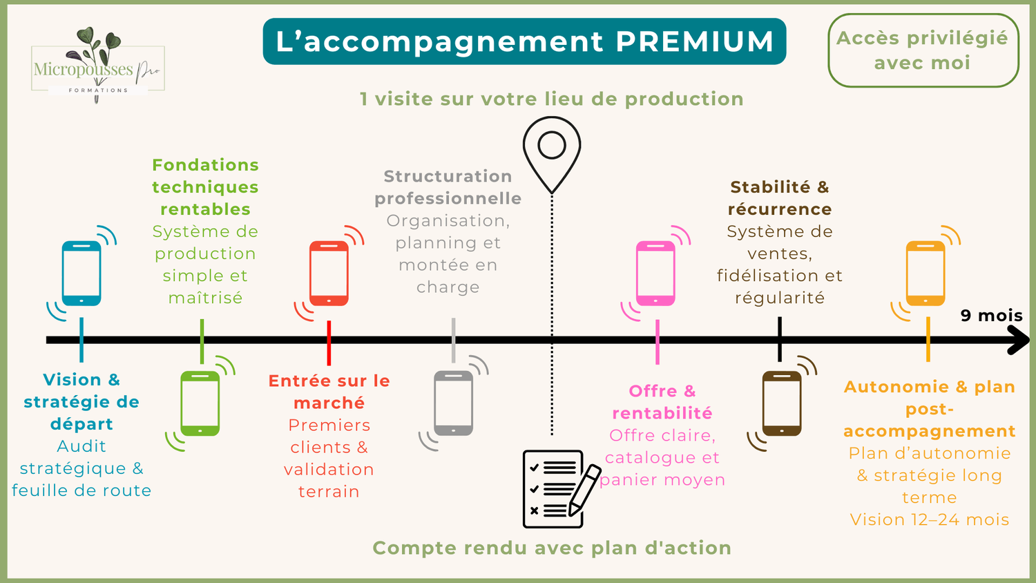 En plus de la formation en ligne, bénéficie d’un suivi individuel et d’une visite sur site de production pour valider tes installations et optimiser tes résultats.